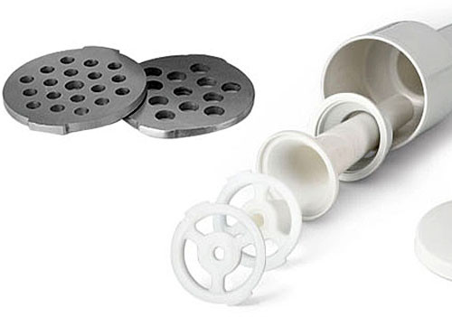 اقلام همراه: ۲ عدد دیسک استیل ضد زنگ با قطر ۴ و ۸ میل، سری سوسیس ساز، هل دهنده