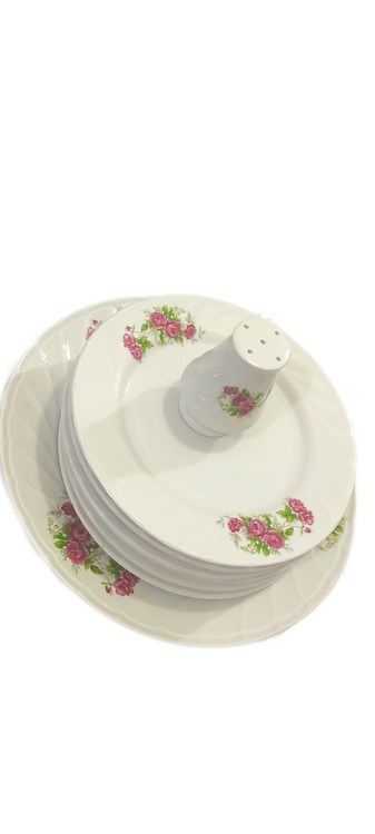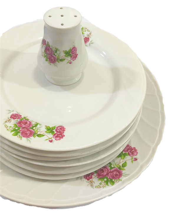 ۸ پارچ شامل: ۱ بشقاب بزرگ، ۶ عدد پیش دستی و ۱ عدد نمکدان