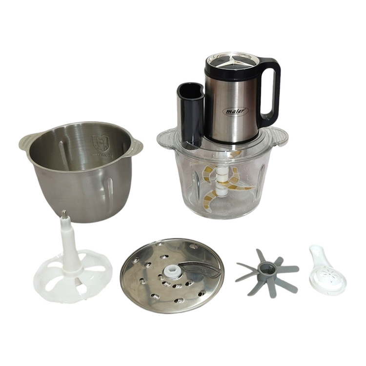 خردکن و سالاد ساز مایر مدل MR948 هم خردکن است و هم سالاد ساز , با خرید این مدل شما علاوه بر اینکه یک خردکن دارید که با آن میتواند انواع مواد غذایی را در ریزترین اندازه ها خرد کنید درکنار آن یک سالاد ساز دارید که با آن میتوانید سبزیجات و میوهجات را در اندازه های مختلف بصورت خلالی و ورقهای و تخت برش دهید. این دستگاه شما رو ازخرید و تهیه سالاد ساز و خردکن بصورت جداگانه بی نیاز میکند چون ویژگیها و قابلیتهای آنها را در خود جای داده است و در وقت و هزینه شما نیز صرفه جویی میکند. خردکن و سالادساز مایر مدل MR948 با وجود موتور پر قدرت ۳۰۰۰ وات خود هم میتواند گوشت و حبوبات و سبزیجات را در ریزترین اندازهها خرد کند و هم برای تهیه سالاد ، ترشی و مربا مورد استفاده قرار گیرد ، چون به راحتی انواع سبزیجات و میوهجات را بصورت خلالی یا ورقه ای و تخت برای شما برش میدهد. ضمن این که این دستگاه قابلیت تنظیم در سه سرعت مختلف دارد که باعث میشود اندازه تکه های برش خورده و خلال شده در سه اندازه بصورت کوچک ، متوسط و بزرگ باشد و صفحه سالادساز بگونه ای تعبیه شده که در قسمت بالایی کاسه قرار بگیرد تا شما بتوانید از تمام حجم ۸ لیتری دو کاسه پیرکس و استیل ضد خش آن بصورت بیوقفه استفاده کنید. خردکن مایر مدل ، شامل اقلام موتور ۳ کیلو وات سه سرعته ، کاسه پیرکس ضد ضربه ۴ لیتری و کاسه استیل ضد خش ۴ لیتری ، تیغه ۶ تایی ، سیر پوست کن ، همزن ، و کارد و قاشق و دفترچه راهنما میباشد.