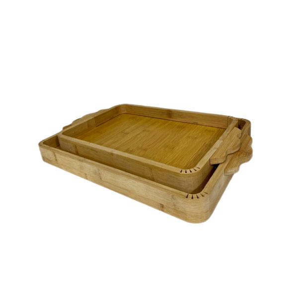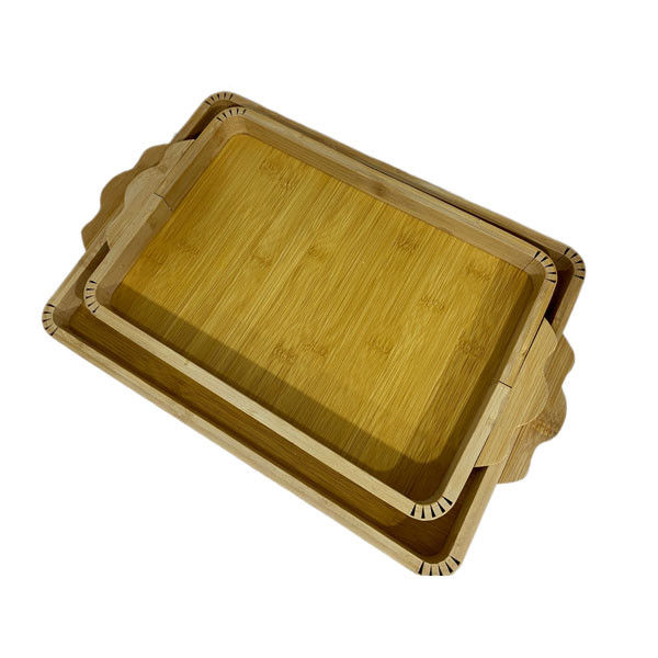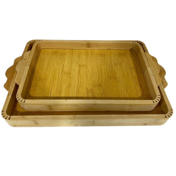 سایز بزرگ طول ۴۲ سانت عرض ۲۸ سانت ارتفاع ۴ سانت-سایز متوسط طول ۳۸ سانت عرض ۲۳ سانت ارتفاع ۴ سانت-ضخامت بامبو ۱ سانت-دارای جعبه-۲ دسته