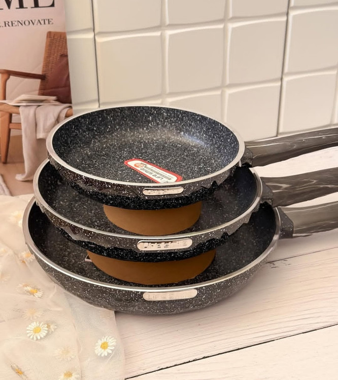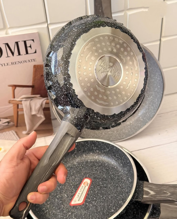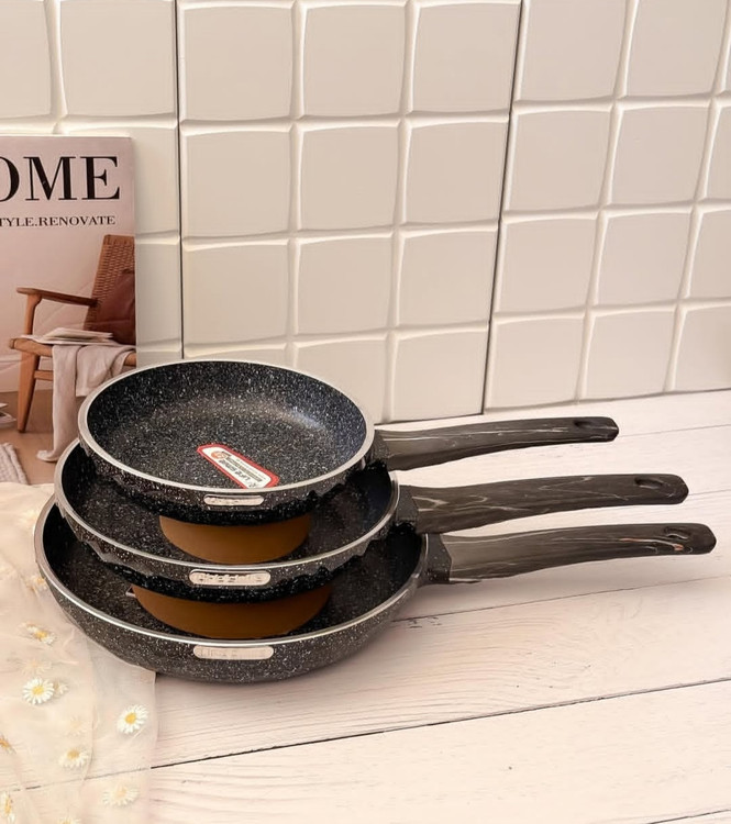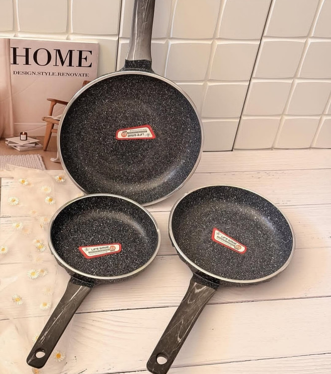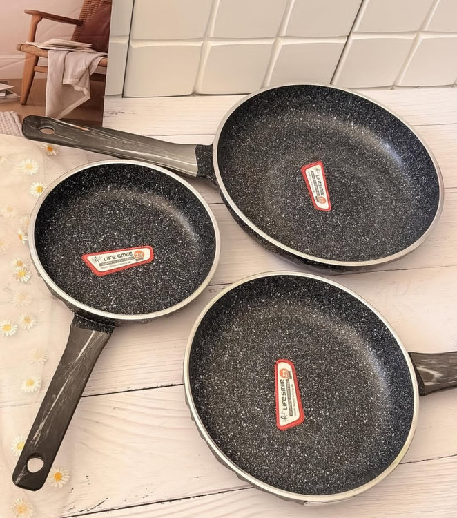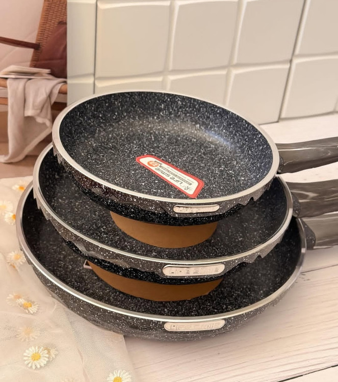 سرویس ماهیتابه لایف اسمایل مدل 2FP7 یک ست تابه در سایزهای 20 ، 24 و 28 سانتیمتر است که دارای طراحی خاص خود چشم هر فردی را به خود جلب میکند جنس بدنه این تایه از آلومنیوم و پوشش گرانیت ضد خش و ضد چسبندگی میباشد.